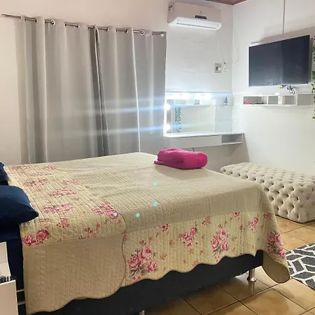 Een ingerichte kitchenette, samen met een eetgedeelte en een eethoek buiten, zijn beschikbaar om te dineren. De keuken heeft ook een oven, keukengerei en glaswerk. Lanchonete Sol Nascente, waar een breed scala aan maaltijden wordt geserveerd, ligt binnen 5 minuten loopafstand ervan.